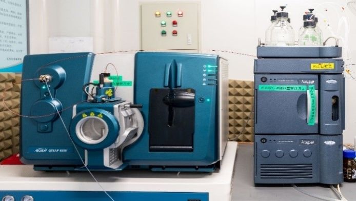 液质联用仪是有机物质定性表征和定量分析的经典仪器。该仪器结合了液相色谱和质谱的优势,具有高分离能力、高选择性、高灵敏度、高通量、检测限低、分析速度快等特点,可提供分析物的相对分子质量、结构、浓度等信息。四极杆-线性离子阱(QTRAP)复合型质谱是新一代串联质谱技术,其独特之处在于不仅具备了完整的三重四极杆质谱的功能,作为质量检测器的线性离子阱还可以对离子富集后再进行检测,大大提高了检测灵敏度,进而得到高质量的图谱信息,在化合物的定性和定量分析中具有重要意义。