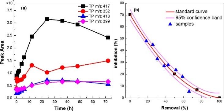 在环境污染物中,抗生素类在环境水中广泛存在,对生态环境和人类健康具有一定的潜在的风险。四环素类(TCs)抗生素在各种环境中经常被检测到。本研究首次证明四环素(TTC)在针铁矿的存在下的转化,研究了TTC与针铁矿的转化机理和转化动力学,以更好地了解TCs在自然环境中的转化情况。研究中根据TTC结构特点,应用UPLC-PDA-MS联用,在产物鉴别中,应用质谱仪的信息依赖性采集功能,采集探测离子信号后进行增强子离子扫描,结合二级全谱特征和光谱特征,确定4种主要降解产物,进一步确证TTC降解转化机制。该检测模式也同样应用在其他类型环境污染物的降解产物寻找和鉴别。