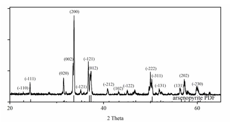 4)测试毒砂样品的X射线衍射谱图,探索在不同地球化学条件下毒砂的无氧溶解过程。