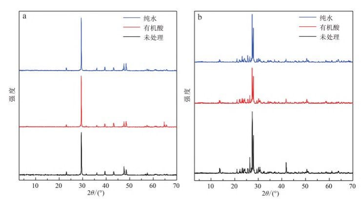 1) 使用X射线衍射表征方解石和钾长石在经过模拟蚯蚓肠道消化液的溶蚀前后的物相变化,可知溶蚀过程中并未出现新矿物。通过矿物衍射峰强度的变化,可推测两种矿物被溶蚀的程度。本文据此探索了矿物在模拟蚯蚓消化液中的溶解动力学机理和生物从矿物中吸收营养元素的过程。