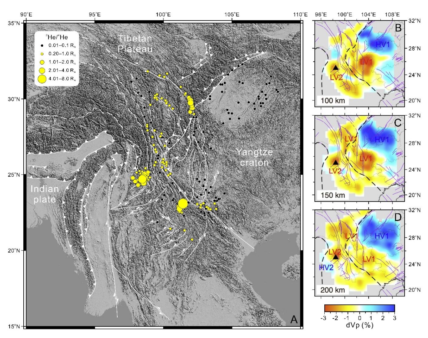 参考文献:Zhang et al., 2021, Linking deeply-sourced volatile emissions to plateau growth dynamics in southeastern Tibetan Plateau. Nature Communications 12: 4157 (https://doi.org/10.1038/s41467-021-24415-y).